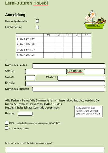Ein klick auf die Ameldung und es öffnet sich das PDF zum Ausdrucken. Doch bald kommt der neue Schulplaner, da ist die Anmeldung auch drin! Gerne mir eine WhatsApp schicken und auf den Schulplaner warten!